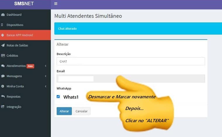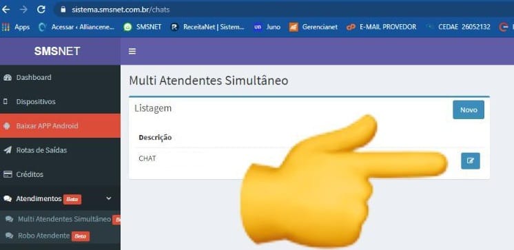 No Painel SMSNET, clique no ícone da Caixa com Lápis em Multi Atendentes Simultâneo.