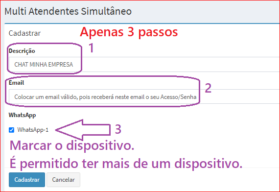 - Ativar Dispositivo WhatsApp: É necessário ter pelo menos 1 cadastrado. Ver tutorial