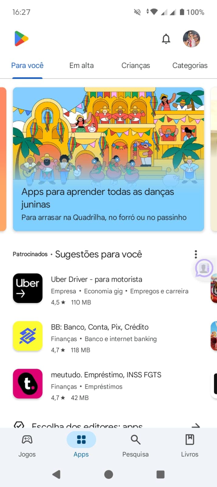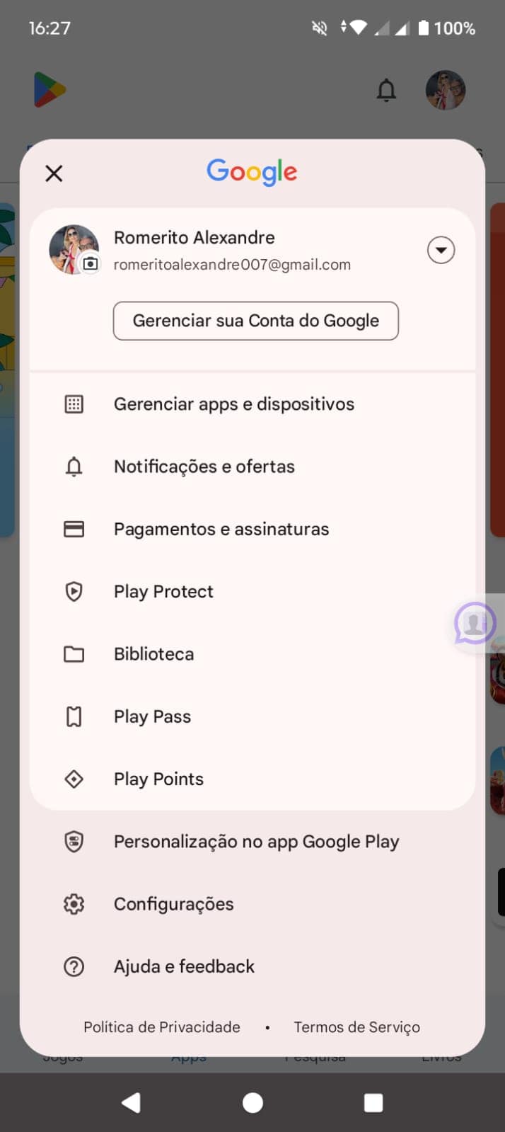 - Abra o app Google Play Store e vá no perfil (canto superior direito).