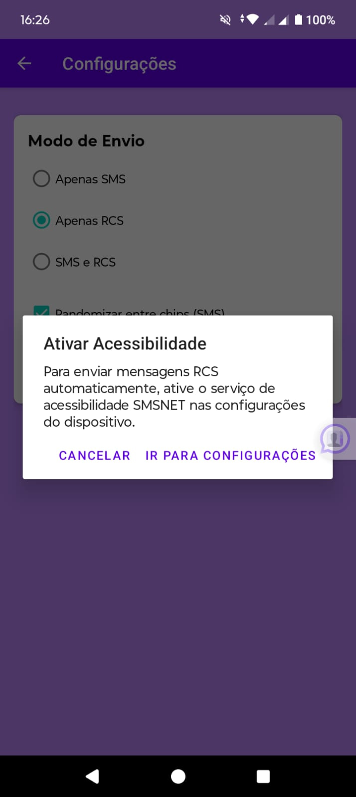 SMSNet Gateway é um aplicativo Android que permite enviar mensagens SMS e RCS usando o seu próprio chip, integrando-se diretamente à plataforma smsnet.com.br. Essa integração combina a confiabilidade do seu dispositivo móvel com a robustez da API da SMSNet. Com isso, você ganha: