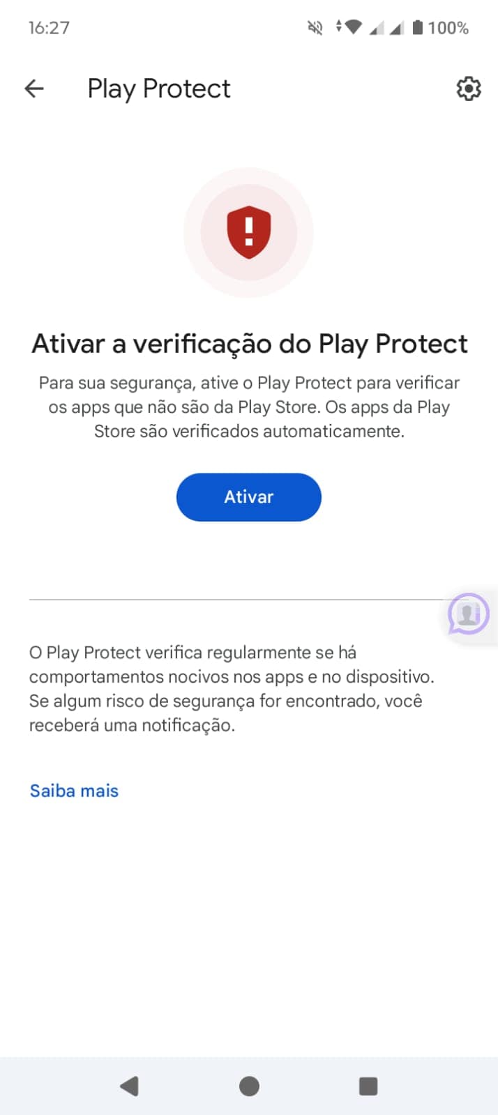 - Acesse “Play Protect” → ícone de engrenagem.