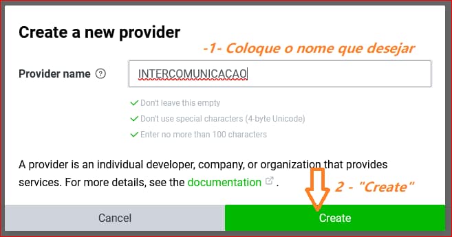 -1- Criará o Providers – “Create”