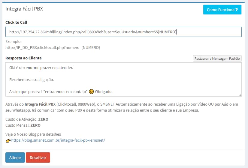 O SMSNET Automaticamente ao receber uma Ligação por Vídeo OU por Áudio em seu Whatsapp. Irá comunicar com o seu PBX e desta forma otimizar a relação entre o seu cliente e sua Empresa.