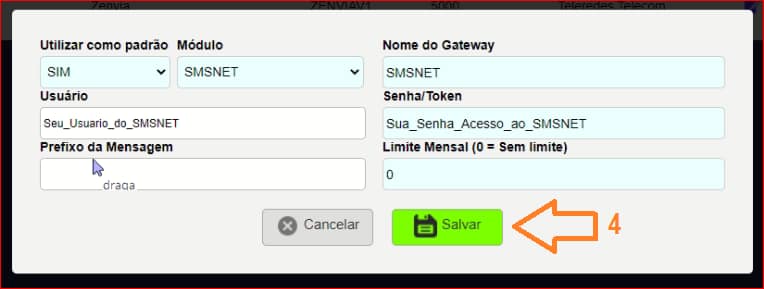 Passo 2 – Configurar o SMSNET