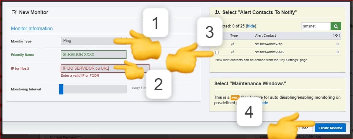 -3- Escolha quem, uma ou mais pessoas, irá receber os Alertas deste Host