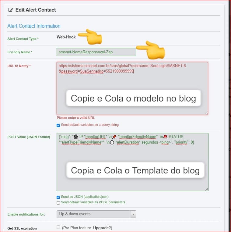 Template para SMS – URL to Notify *