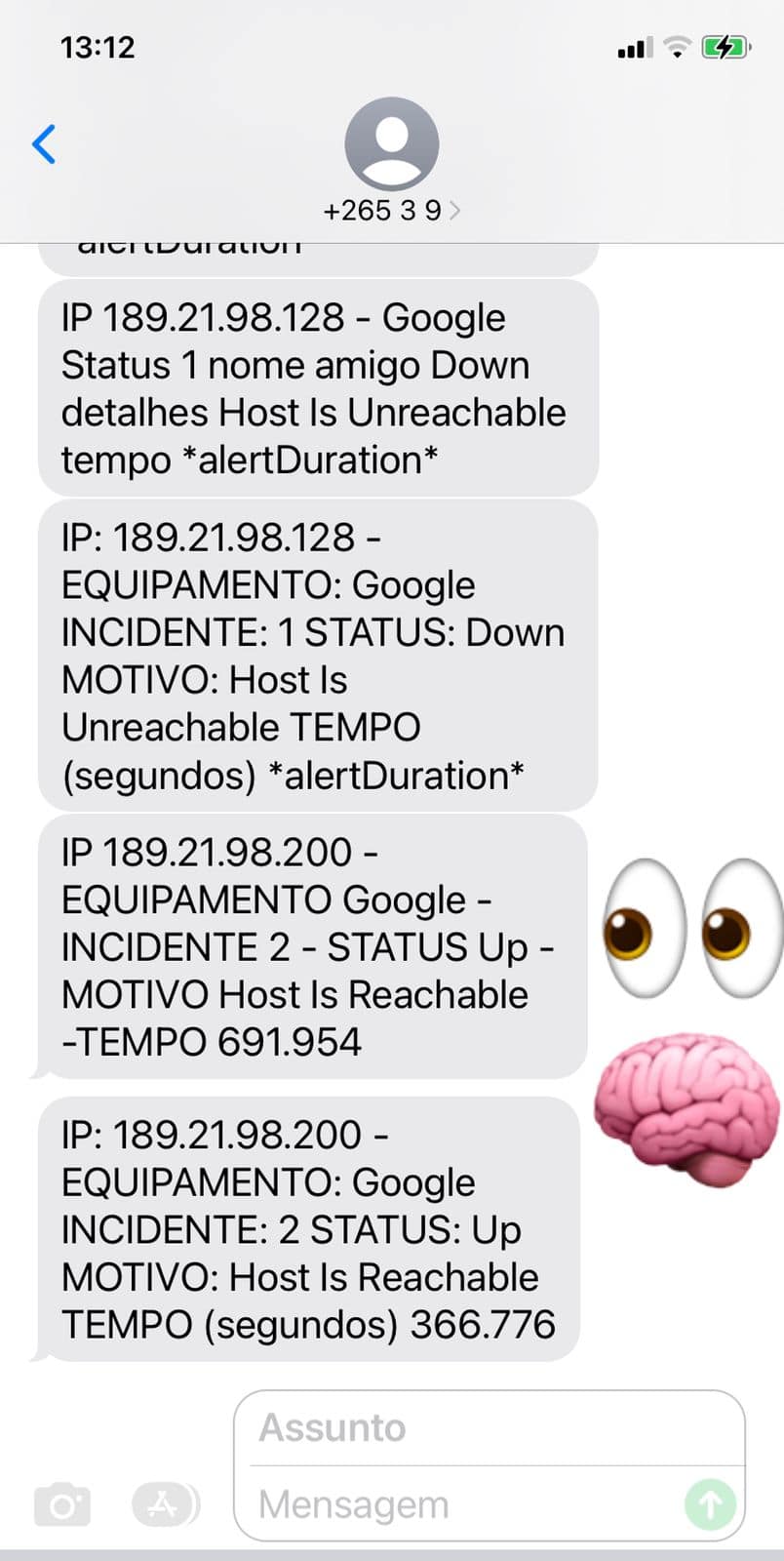 * Exemplo de como receberá os seus Alertas por SMS