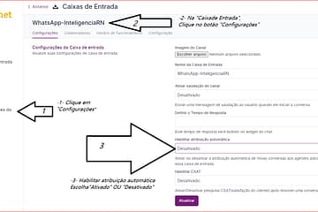 Configurações / Caixa de Entradas / Configurações>> Vai caixa de entrada e desativa atribuição automática Pronto. * Para acessar o SMSNET entre no site https://www.smsnet.com.br/ * Para criar a sua conta: https://sistema.smsnet.com.br/registrar Equipe SMSNET trabalhando para o seu Crescimento!
