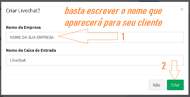 Em seguida, coloque o nome fantasia da sua empresa e pronto — LiveChat configurado!