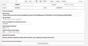 Substituir os valores USUARIO, SENHA, NUMERO e MENSAGEM.